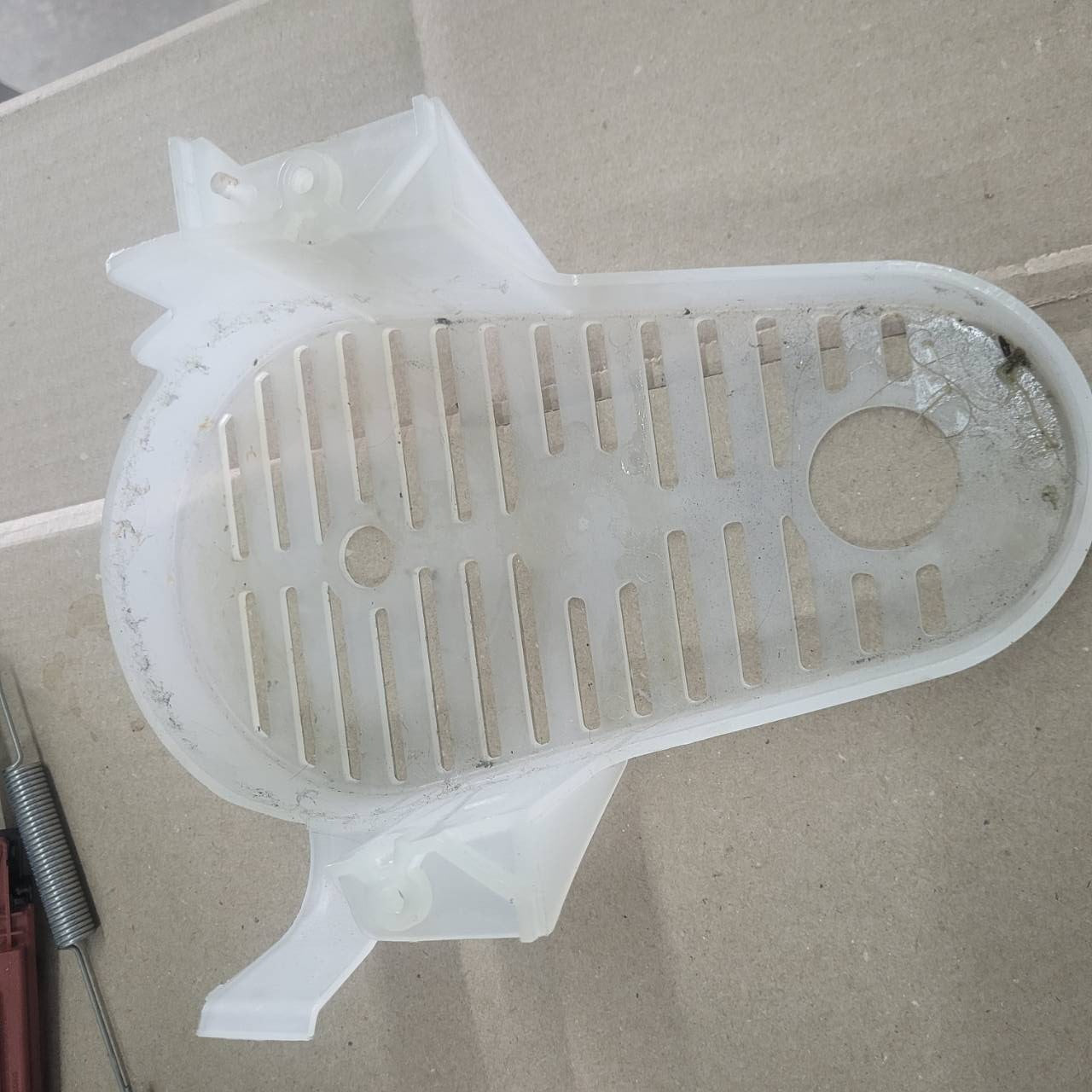 Pulley shield WPW10427633 covers and protects the drive belt and pulleys.